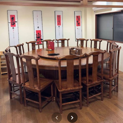 【円卓】当店のテーブル席は、落ち着いた雰囲気の中でゆったりとお食事を楽しむのに最適な空間です。美味しい料理を囲んでの楽しいひとときをお楽しみください。